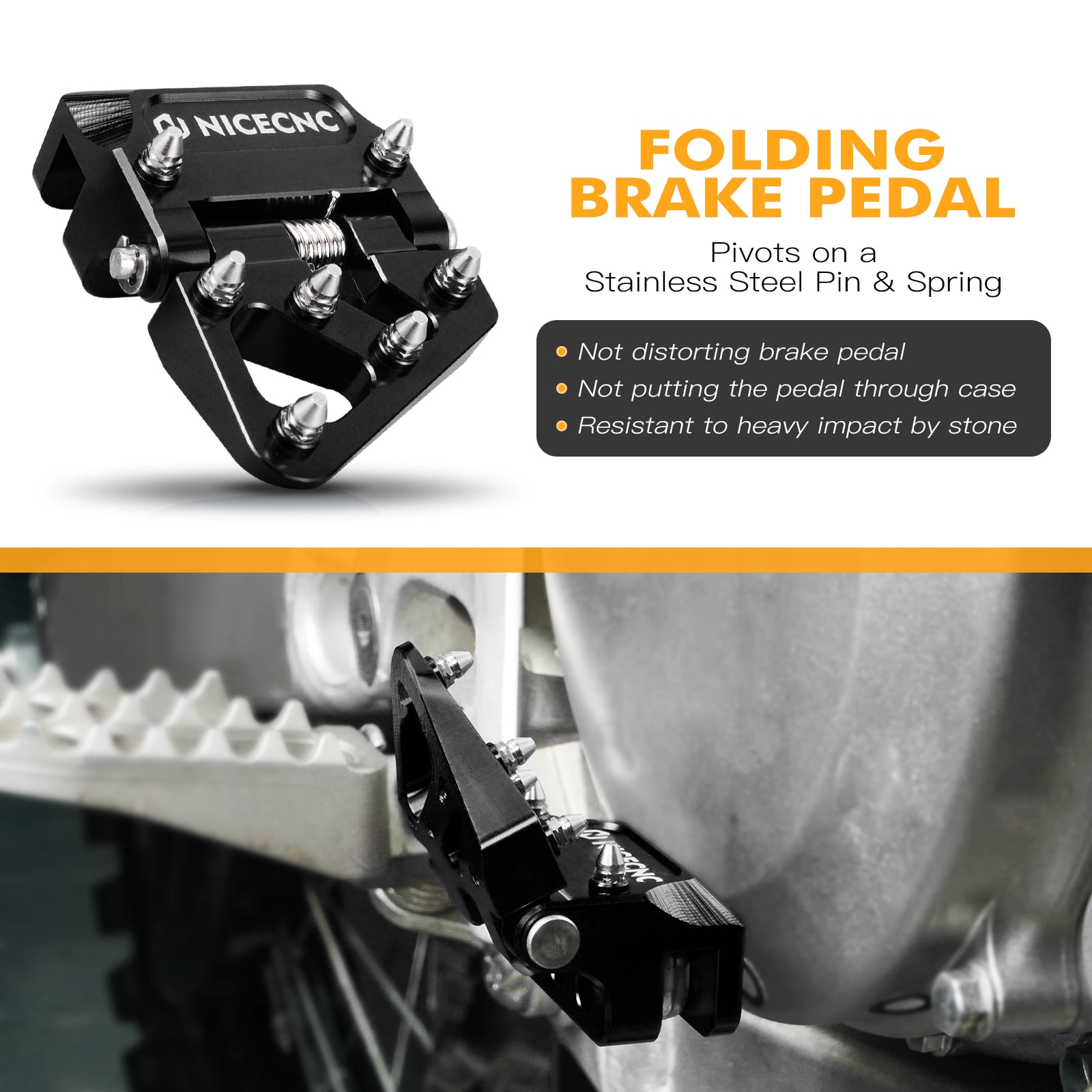 - The tip can be folded on the stainless steel and spring to prevent bending in the event of a collision with rocks, which may cause damage to your clutch cover.