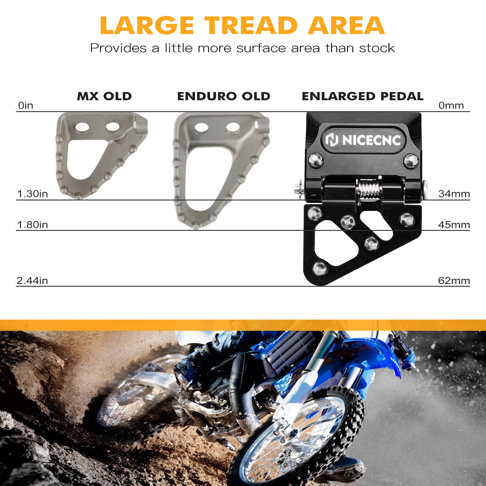 - The tip can be moved back and forth 5MM/1/5'' to fit your feet for great comfort while you're braking.