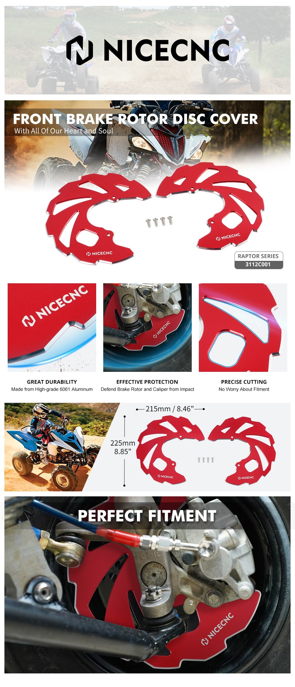 - Total protection for the front brake rotor and caliper, extended coverage protects the brake caliper from rocks, and bushes.