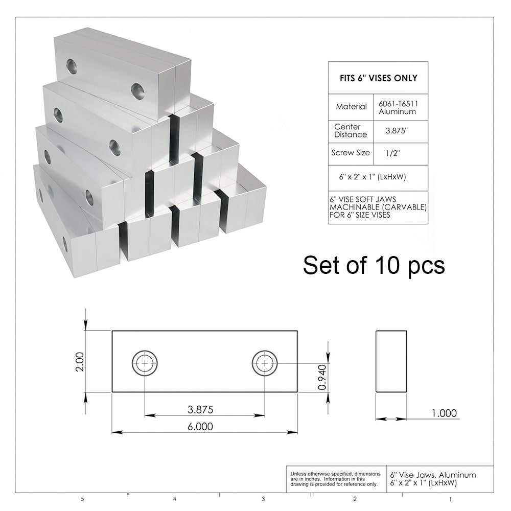 - 10 sets Standard Soft Jaws fit 6" VisesSize 6 x 2 x 1"