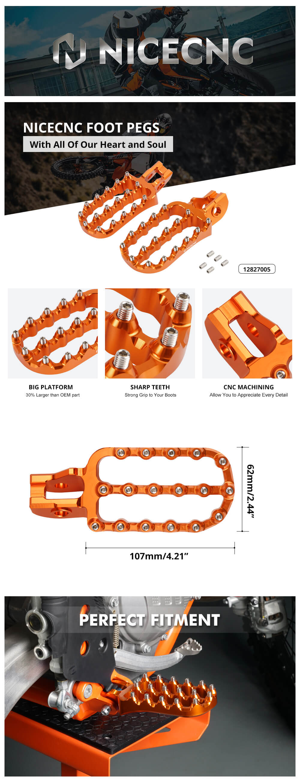 - 【Enlarged Treading Area】Much larger than original one for superior comfort. They measure roughly 5" (125mm) Long from the center of the bolt hole, by 2.44" Wide. Give you greater control/safety and fatigue-free riding standing up.
